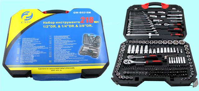 Набор "CNIC"218 предметов GW-B5218M (торцевые головки 1/4"-1/2"-3/8", ключи, вставки) CrV в кейсе (упакованы по 2шт.)