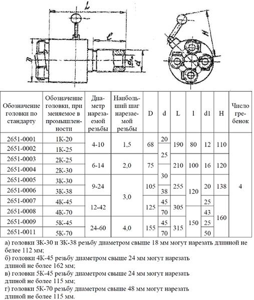 Головка винторезная самооткрывающаяся для круглых гребенок 2К-30 d=6-14, ГОСТ 21760-76