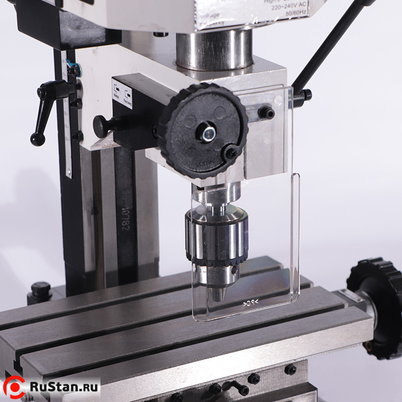 Привод мини фрезерного станка FPX-20E обеспечивается коллекторным двигателем с постоянными магнитами. Диапазоны оборотов выбираются с помощью двухскоростной коробки передач (H и L). Плавная регулировка скорости вращения шпинделя обеспечивает потенциометр, благодаря которому можно установить любую скорость вращения в выбранном диапазоне.