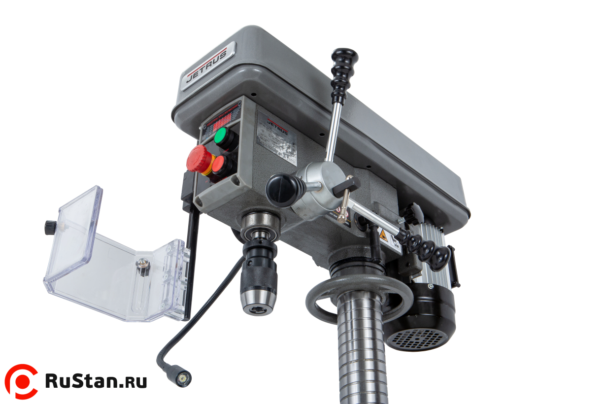 Сверлильная голова обладает возможностью поворота вокруг колонны на 360°. Максимальный диаметр сверления отверстий – до 16 мм. Конус шпинделя выполнен по стандарту B16.