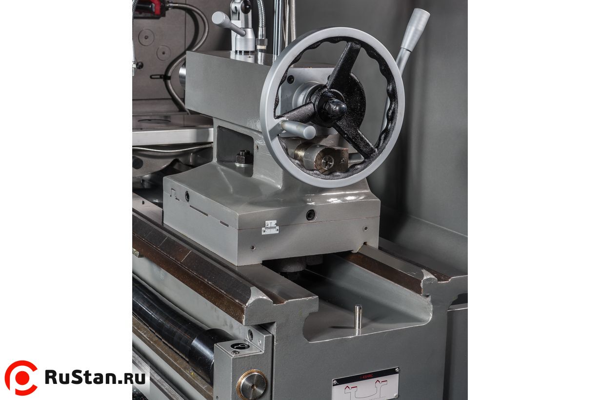 Станок оборудован мощным асинхронным двигателем на 7,5 кВт, предусмотрено 12 режимов скоростей шпинделя, включая режим 36 об/мин для нарезания резьбы плашкой. Биение на шпинделе у данной модели не превышает 9 микрон, цена деления нониуса – 0,02 мм. Коробка подач имеет 65 предустановленных режимов работы в продольной и поперечной плоскости, что позволяет нарезать все основные типы резьб. Для облегчения смены режимов предусмотрен толчковый режим пуска двигателя. Для удобства работы оператора GH-26120ZH DRO оборудуется устройством быстрого перемещения суппорта, а также педалью тормоза и экстренного отключения. Массивная станина станка отливается из высококачественного чугуна и служит эффективным гасителем вибраций, а также помогает отводить тепло от шпинделя и и инструмента. Направляющие станины проходят закалку токами высокой частоты, затем шлифуются.