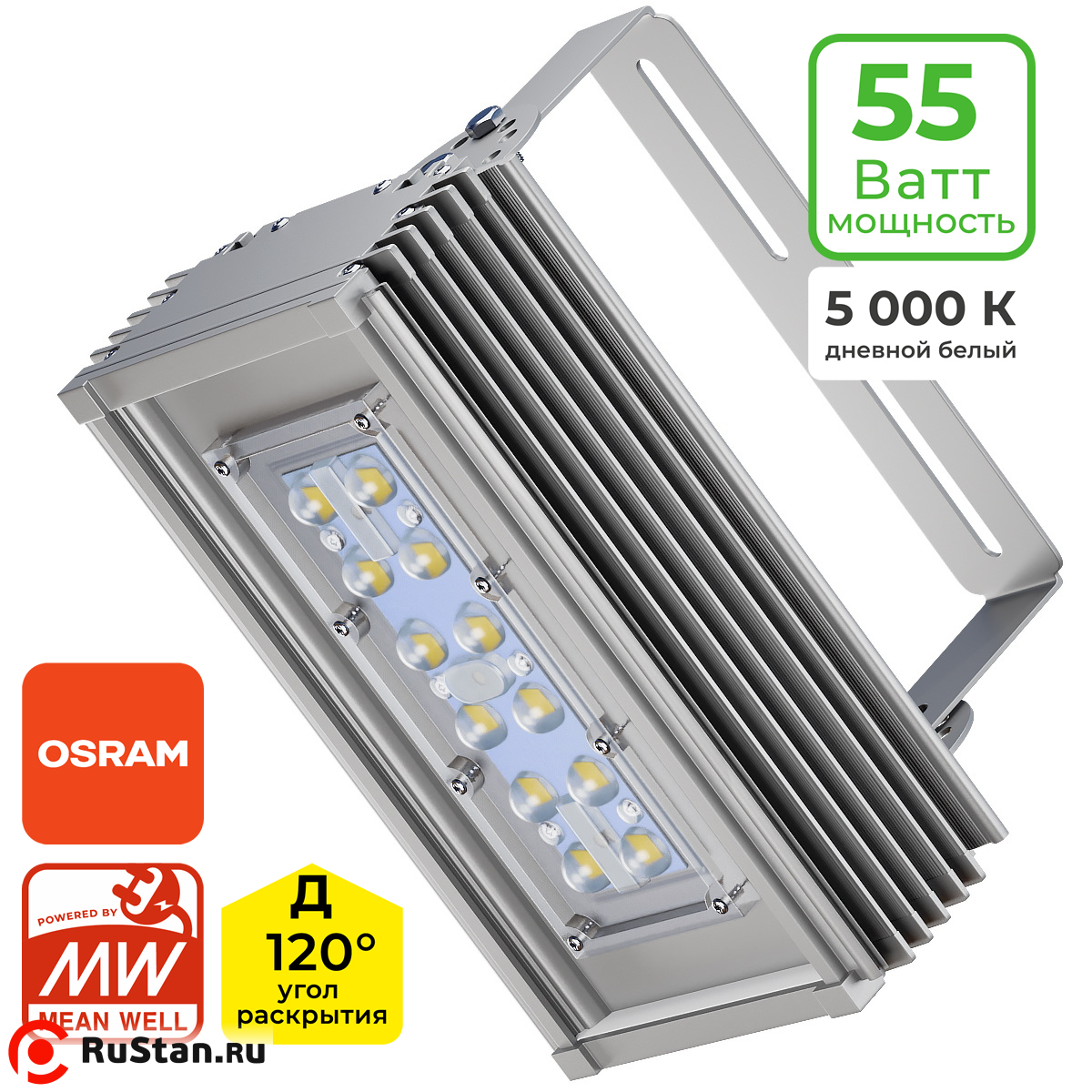 Промышленный светодиодный светильник 55 Ватт, IO-PROM55S мощностью 55 Ватт на базе светодиодов OSRAM. Обеспечивает высокий световой поток 8700 лм при низком энергопотреблении. Степень защиты IP67 позволяет использовать его как внутри, так и снаружи помещений. Корпус выполнен из алюминия с серым порошковым покрытием, оснащён поворотным креплением для удобного монтажа. Светильник не требует обслуживания в течение всего срока службы и соответствует требованиям ГОСТ и IEC.